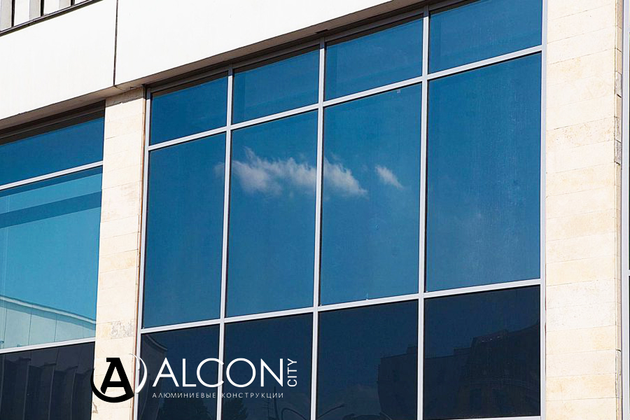 - Структурное остекление фасадов — позволяет скрыть элементы алюминиевых профилей с внешней стороны.